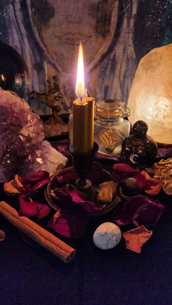 Light a candle nearby with cinnamon, clove, or dragon’s blood to seal the ritual. I added home dried Roses, and Cinnamon. As well as Amythyst and Howlite stones. Amethyst for it’s creative and inspirational energy that can ignite the imagination and enhance artistic expression. It can be a valuable tool for artists, writers, and anyone seeking a burst of inspiration. At its essence, the main Howlite meaning for me, is all about calming patience and newfound perspective.