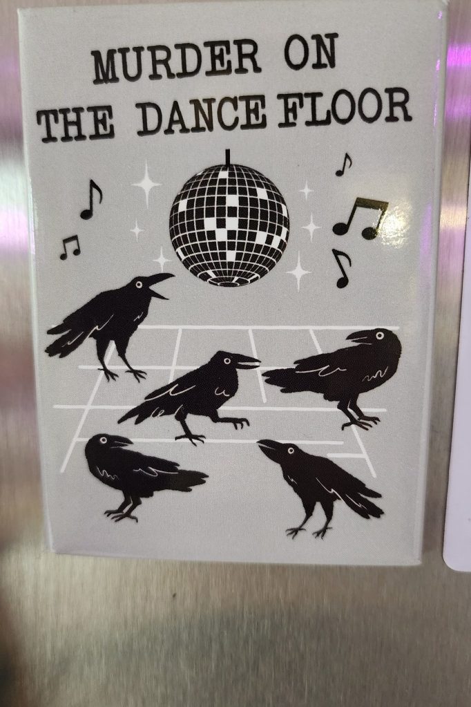 Of course, I have a magnet that says “Murder on the Dance Floor” with crows under a disco ball!