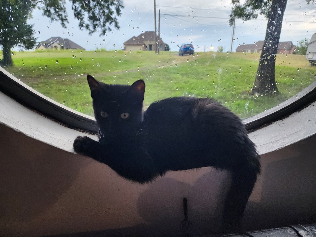Most mornings, our black cat curls in its hollow, perched like a guardian between realms. She watches the world from this curved ledge while we begin our day. But not this day…