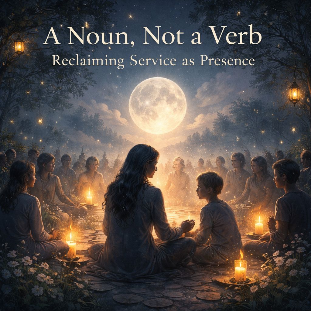 When service is only a verb, it can become a performance. A quiet panic hums underneath: If I stop moving, do I still matter? But when service is a noun, action flows from essence rather than fear. The verbs that arise are expressions, not proofs. They are gestures of a deeper center that does not disappear in stillness.